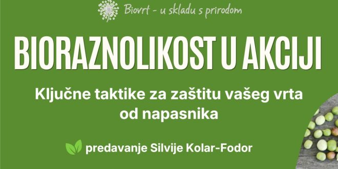 Cilj predavanja je približiti javnosti principe bioraznolikosti u vrtu te pokazati kako uz pomoć prirodnih procesa i korisnih organizama smanjiti pojavu štetnika i unaprijediti zdravlje biljaka – bez korištenja kemijskih sredstava.