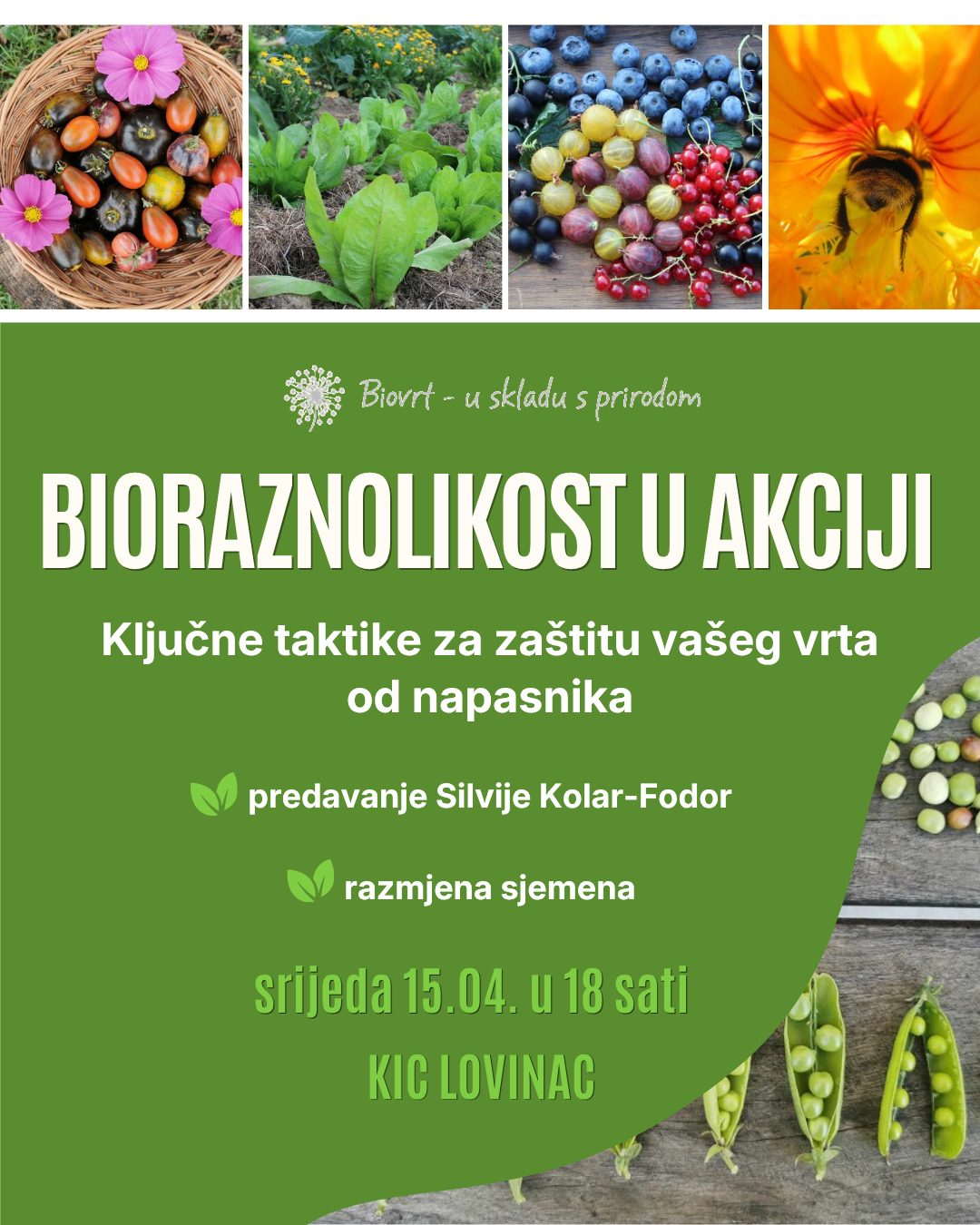 U srijedu, 15. travnja, s početkom u 18 sati u prostoru Kulturno informativnog centra Lovinac održat će se edukativno predavanje pod nazivom „Bioraznolikost u akciji – ključne taktike za zaštitu vašeg vrta od napasnika“.