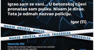U slučaju pronalaska oružja, streljiva ili minsko-eksplozivnih sredstava važno je da građani ne diraju, ne pomiču i ne pokušavaju sami ukloniti takve predmete, već da o pronalasku odmah obavijeste policiju pozivom na broj 192 Jučer, 5. ožujka, građanin je dojavio da je u Donjem Vagancu pronašao minsko-eksplozivno sredstvo. Izlaskom na …