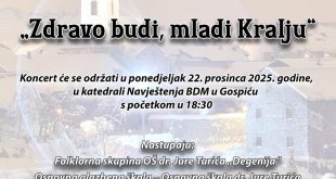 Osnovna škola Dr. Jure Turića i Župa Navještenja BDM Gospić pozivaju vas na koncert povodom božićnih i novogodišnjih blagdana pod nazivom “Zdravo budi, mladi Kralju” koji će se održati u ponedjeljak 22. prosinca u katedrali Navještenja BDM u Gospiću s početkom u 18:30 sati. Nastupit će folklorna skupina “Degenija” te …