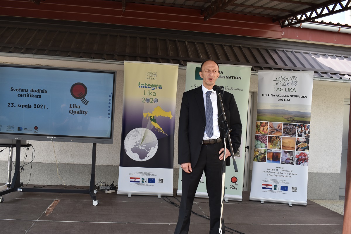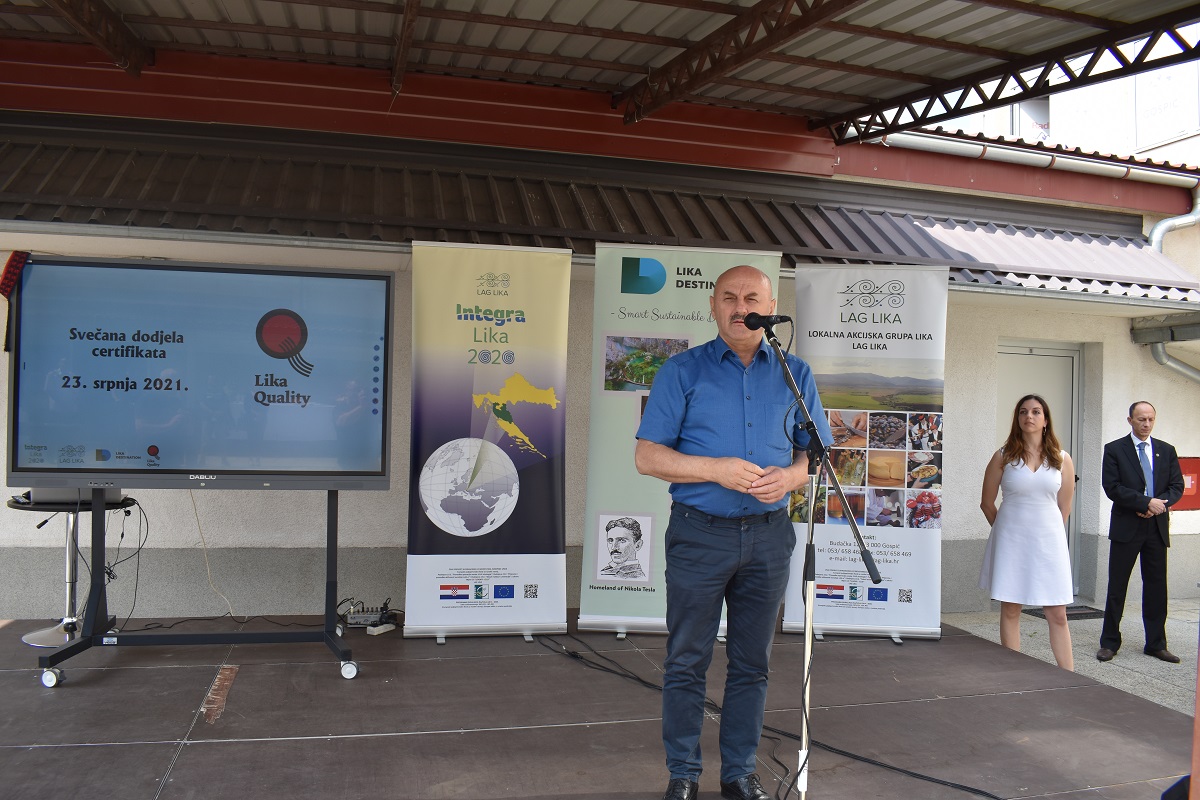 GOSPIĆ- Na četvrtoj po redu dodjeli certifikata Lika quality primljeni su novi proizvođači u ovaj sustav. Oni su zahtjeve za dobivanje znaka Lika quality predali u travnju, a sada su postali i njegovi korisnici. Znak se dodjeljuje za period na dvije godine pa su novi znak dobili i korisnici kojima je njegovo korištenje isteklo. Ovaj znak dodjeljuje se proizvodima na području Destinacije Lika koji se rasprostire na kontinentalnom i priobalnom području Ličko-senjske županije, području općina Rakovica, Saborsko i Plaški u Karlovačkoj županiji i općine Gračac u Zadarskoj županiji. Voditeljica Klastera Lika destination Petra Kovačević podsjetila je da je Lika quality sustav nastao kao dio projekta integralnog gospodarskog razvoja Like Integra 2020., nastavlja se i dalje. Predsjednik LAG-a Lika je Danijel Tušak koji kaže da sustav Lika quality proizvođačima donosi dobro, cilj je stvoriti što jače tržište i brend, uz sinergijski učinak. Na dodjeli certifikata bio je i gradonačelnik Karlo Starčević koji je između ostaloga rekao da se i Lika konačno počela buditi, a jačanjem će svi postati sposobniji za natjecanje koje je u ova teška vremena sve teže. Istaknuo je da bez kvalitetnog proizvoda nema konkurencije, kvalitetan proizvod iziskuje jako puno rada. Grad i županija će oformiti jak tim koji će proizvođačima stajati na usluzi. S time se slaže i župan Ernest Petry koji ističe da će županija imati dobru suradnju sa svim lokalnim jedinicama kako bi u nadolazećem europskom razdoblju do 2027.godine povukli što više sredstava. Periodu. Petry je pohvalio i Danijela Tušaka i otkrio da je Tušak predsjednik Upravnog vijeća Razvojnog centra. Župan je najavio jačanje Like razvojne agencije koju treba kadrovski ojačati. A sve to kako bi proizvođačima bilo što jednostavnije doći do sredstava, ali i plasirati svoje proizvode.