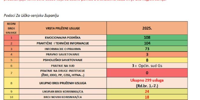 Sve usluge u potpunosti su besplatne za osobe koje se obrate za pomoć i podršku. U osam godina djelovanja, u okviru Mreže podrške i suradnje pruženo je više od 61.780 usluga za 6.589 korisnica i korisnika koji su se obratili za pomoć i podršku, što potvrđuje koliko je ovakav oblik podrške potreban u zajednici. Na području Karlovačke i Ličko-senjske županije Ženska grupa Karlovac „Korak“ pružila je ukupno je 971 uslugu podrške- od čega 672 u Karlovačkoj i 299 u Ličko-senjskoj županiji. Ti podaci nisu samo brojke- oni predstavljaju konkretne osobe koje su dobile pomoć u trenutcima kada im je bila najpotrebnija.