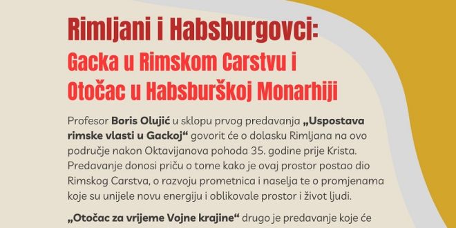 Gacko pučko otvoreno učilište Otočac i ove godine sudjeluje u manifestaciji Festival znanosti te 22. travnja 2026. u 19 sati organizira dva predavanja na temu “Rimljani i Habsburgovci: Gacka u Rimskom Carstvu i Otočac u Habsburškoj Monarhiji”. Profesor Boris Olujić u sklopu prvog predavanja „Uspostava rimske vlasti u Gackoj“ govorit će o dolasku Rimljana na ovo područje nakon Oktavijanova pohoda 35. godine prije Krista. Predavanje donosi priču o tome kako je ovaj prostor postao dio Rimskog Carstva, o razvoju prometnica i naselja te o promjenama koje su unijele novu energiju i oblikovale prostor i život ljudi. „Otočac za vrijeme Vojne krajine“ drugo je predavanje koje će održati profesor Danijel Marot, a donosi pogled na vrijeme kada Otočac postaje dio obrambenog sustava Habsburške Monarhije. Govorit će o ustroju Vojne krajine, ulozi Otočke kapetanije i Otočke pukovnije te o životu na prostoru obilježenom sigurnosnim izazovima i stalnom prilagodbom, ali i energijom koja je pokretala ljude u svakodnevici i obrani prostora.