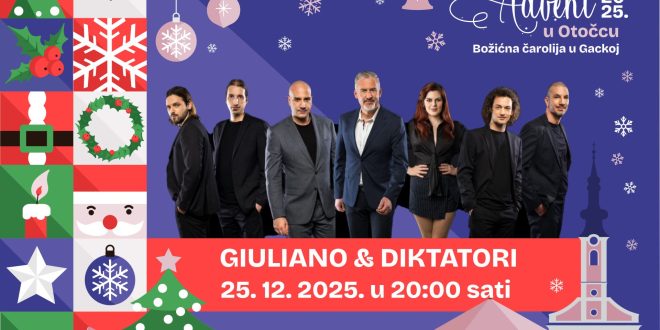 Otočac će ove godine dočekati Božić uz pravu glazbenu čaroliju! U četvrtak, 25. prosinca, s početkom u 20:00 sati, u gradskom parku Otočca održat će se veliki božićni koncert Giuliana & Diktatora. Jedan od najprepoznatljivijih vokala domaće glazbene scene, Giuliano, zajedno sa svojim bendom Diktatori, donosi večer ispunjenu nezaboravnim hitovima, pozitivnom energijom i odličnim raspoloženjem. Publiku očekuje spoj rocka, popa i emocija koji uvijek podigne atmosferu do usijanja. Dođite i zapjevajte uz poznate pjesme poput “Dobro mi došla ljubavi”, “Zovem prijatelje moje”, “Ćutin se lipo” i mnoge druge koje svi znamo napamet. Proslavimo zajedno Božić uz dobru glazbu, veselo društvo i toplinu blagdanskog duha. Advent u Otočcu – Božićna čarolija u Gackoj i ove će godine biti puna koncerata, radionica, plesnih programa i zabave za sve uzraste, a Otočki gradski park središte svih događanja. Advent u Otočcu organiziraju Turistička zajednica Grada Otočca i Grad Otočac, a ove godine uz financijsku pomoć i Hrvatske turističke zajednice. Otvorenje Adventa bit će u subotu 13. prosinca a, detaljan program organizatori će objaviti uskoro.