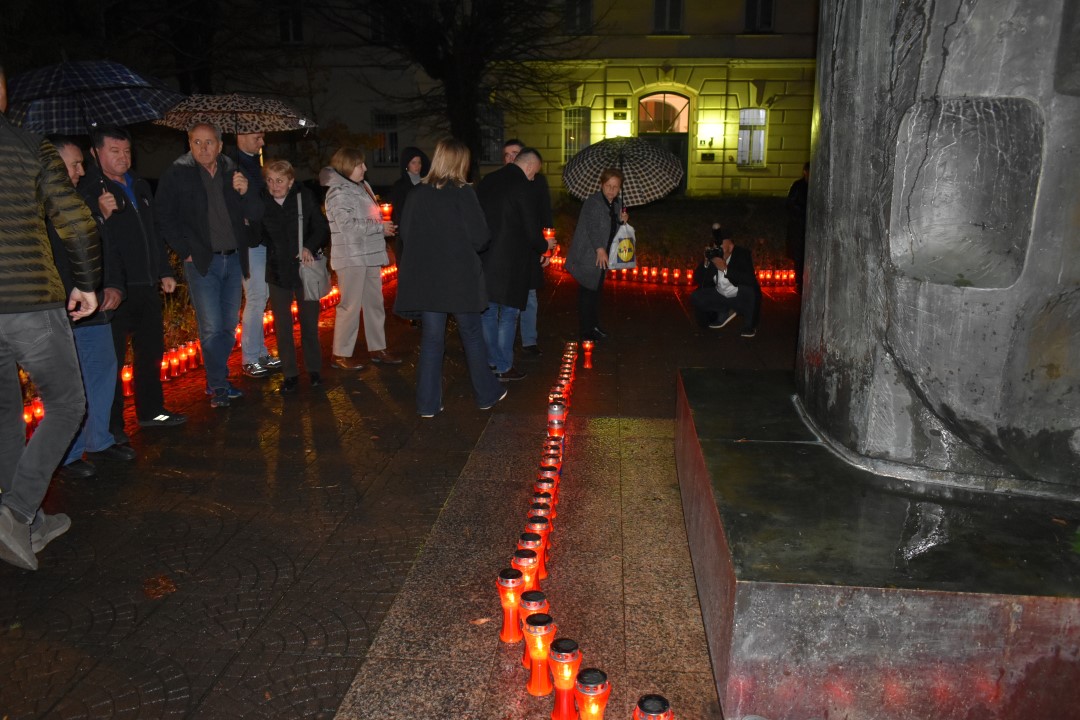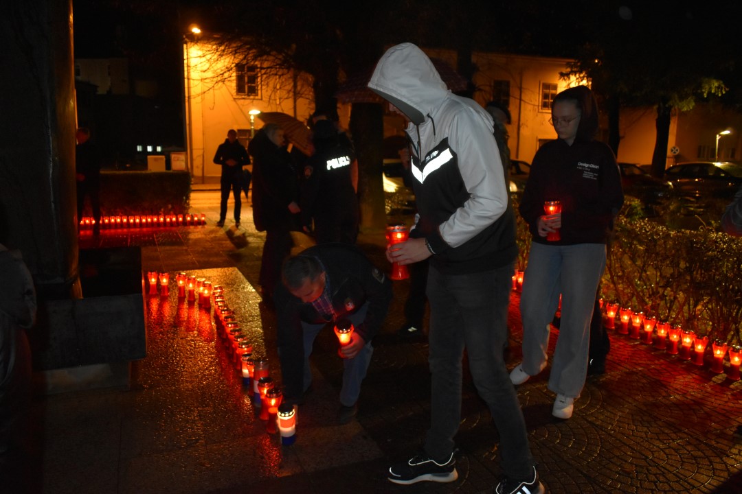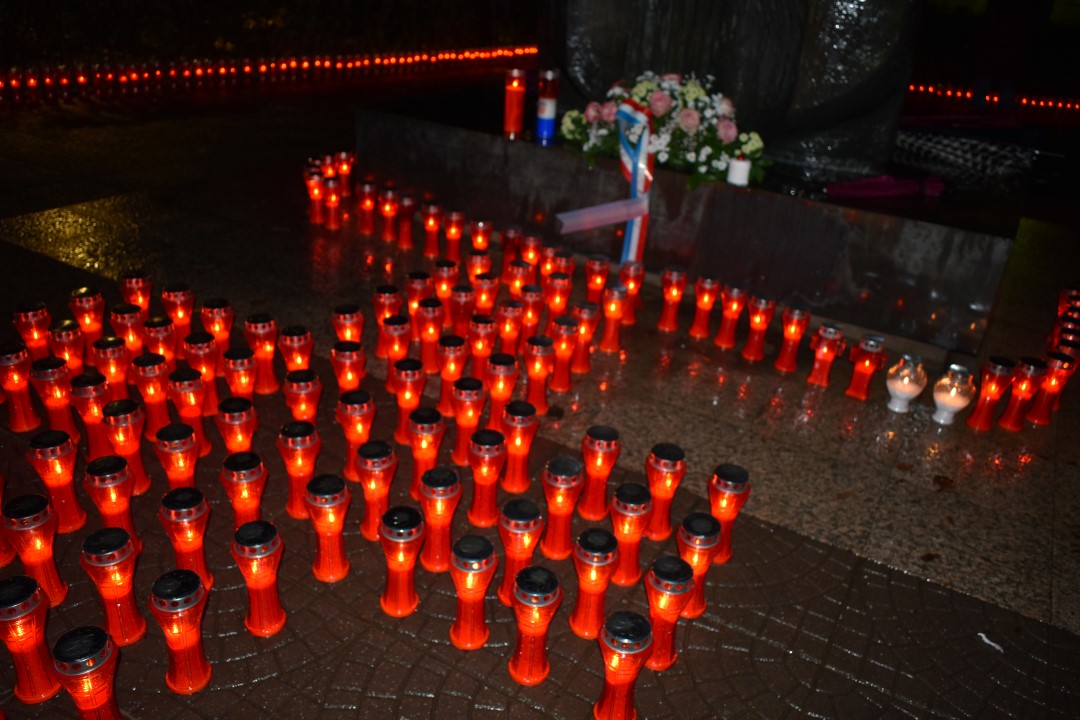 Brojni su Gospićani, usprkos promjenljivom i povremeno kišovitom vremenu, došli odati počast žrtvama Domovinskog rata, pogotovo žrtvama Vukovara i Škabrnje. Puno je simbolike u činjenici da stanovnici grada heroja Gospića odaju počast žrtvama u gradu heroju Vukovaru. Brojni su svijeće stavljali oko Spomenika poginulim hrvatskim braniteljima i civilnim žrtvama Domovinskog rata na Trgu Alojzija Stepinca. Svijeće su se palili u simboličnom prikazu krunice s križem postavljene oko spomenika. Zajedno sa svojim sugrađanima svijeće su zapalili i gradonačelnik Darko Milinović i njegov zamjenik Ivica Kovačević. Riječi molitve tijekom paljenja svijeća govorio je gospićki župnik, otac Anto Knežević koji je prije toga u Katedrali Navještenja Blažene Djevice Marije služio svetu misu.