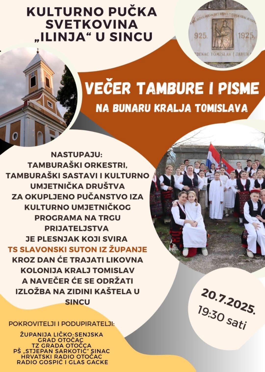 Pod nazivom Kulturno pučka svetkovina „Ilinja“ u Sincu, 20. srpnja 2025. godine s početkom u 19:30 sati, na bunaru Kralja Tomislava održat će se tradicionalna manifestacija koja svake godine okuplja brojne posjetitelje, ljubitelje tamburaške glazbe i kulturne baštine.