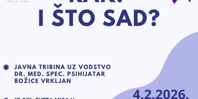 Povodom Svjetskog dana borbe protiv raka, a u organizaciji Udruge oboljelih i liječenih od malignih bolesti, njihovih obitelji i prijatelja “VILA ZA LIKU” u Pučkom otovrenom učilištu održat će se javna tribina pod nazivom “Rak! I što sad?”. Predavanje na temu suočavanja s teškom dijagnozom karcinoma i načinima emocionalnog, ali i fizičkog nošenja s novonastalom situacijom i dijagnozom održat će dr.med., specijalistica psihijatrije Božica Vrkljan. Predavanje u Pučkom otvorenom učilištu dr. Ante Starčević danas ( 4. veljače) započinje u 17:30 h.