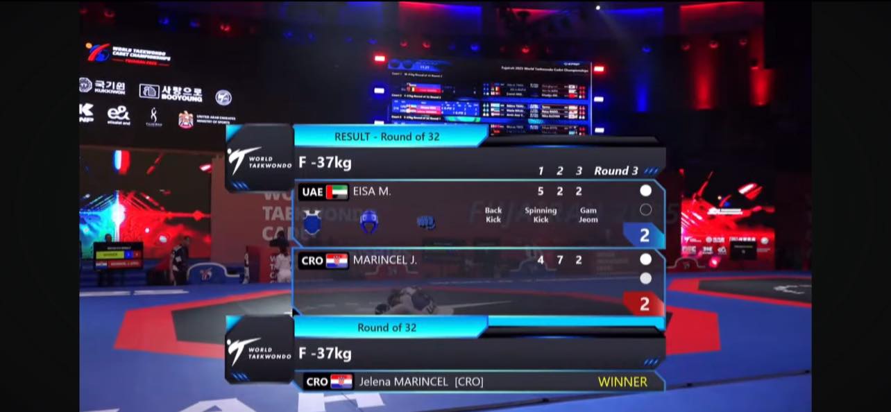 Jelena Marincel nastavlja svoj pobjednički niz na Svjetskom kadetskom taekwondo prvenstvu koje se održava u Fujairahu, Ujedinjeni Arapski Emirati!