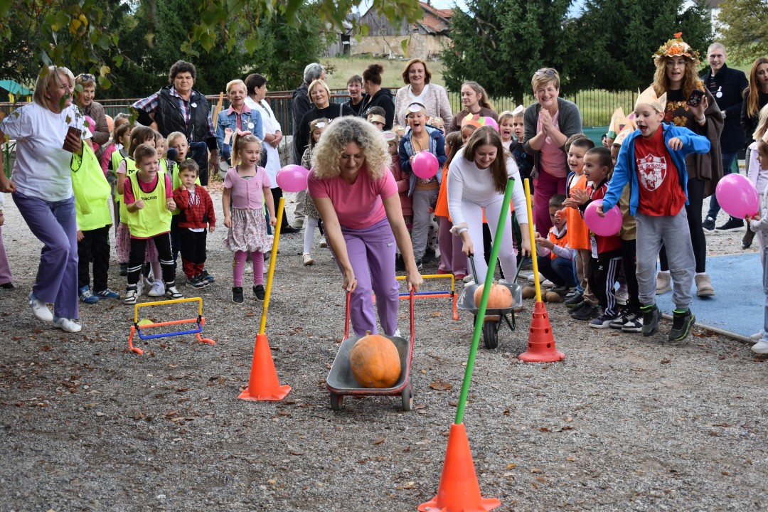 U završnom dijelu Jesenske svečanosti bilo je posebno veselo kada su se djeca i odgojiteljice natjecali u raznim sportskim igrama, a po završetku igara uživali u palačinkama.