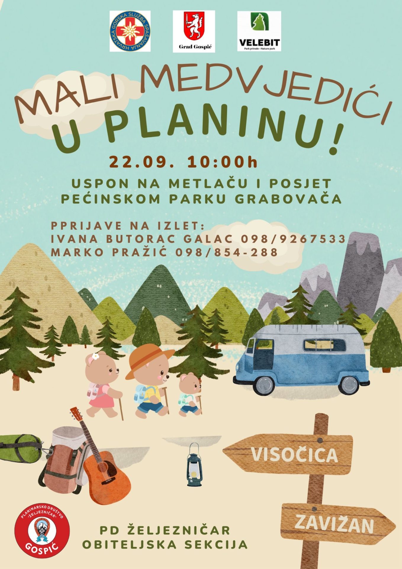 Planinarsko društvo Željezničar Gospić s ponosom pokreće novu sekciju “Mali medvjedići”! Cilj ove sekcije je uključiti naše najmlađe članove u planinarenje i izlete, kako bi od malih nogu razvijali ljubav prema prirodi, planinama i zdravom načinu života.