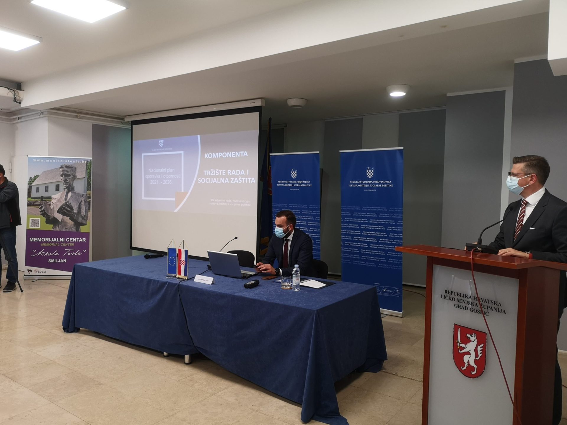 Ministar rada, mirovinskoga sustava, obitelji i socijalne politike Josip Aladrović i Ministar gospodarstva i održivog razvoja Tomislav Čorić sa suradnicima posjetili su danas Gospić. Ministar Aladrović predstavio je u Kulturno informativnom centru Gospiću reforme i investicije unutar Nacionalnog plana oporavka i otpornosti koje se odnose na tržište rada i socijalnu zaštitu. Sam proces usvajanja je započeo, prvi prijedlog samog Nacionalnog plana oporavka i otpornosti je poslan Europskoj Komisije te se do kraja godine očekuje da će sredstva biti alocirana i doznačena u državnom proračunu kako bi se započelo s provedbom plana, naglasio je ministar Aladrović.