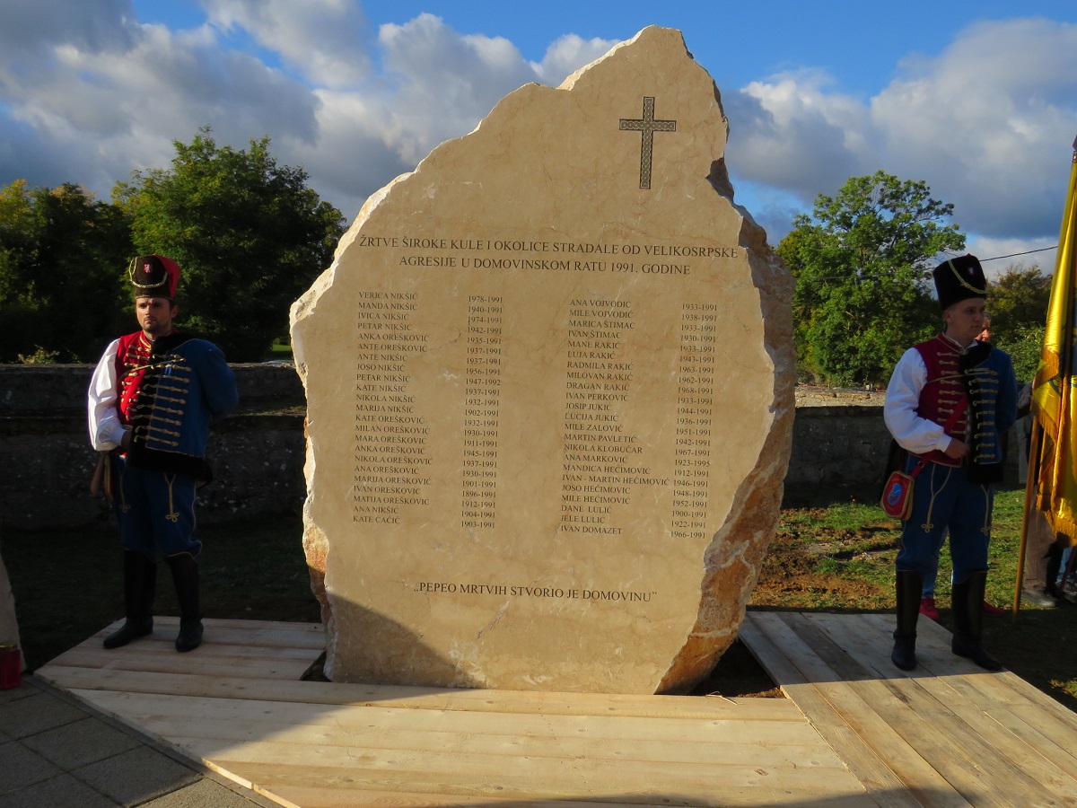 ŠIROKA KULA – U Širokoj Kuli obilježena je danas tužna obljetnica, 30 godina stradavanja mještana Široke Kule i okolnih naselja. Tom prigodom ministar hrvatskih branitelja Tomo Medved i sin dvoje žrtava tog stradavanja, Tihomir Vojvodić, otkrili su spomenik na kojemu su napisana imena svih pobijenih. Svima su godine rođenja različite, nažalost svima osim jedne žrtve godina smrti je ista, 1991. Najmlađa žrtva imala je 13 godina, najstarija više od 90. Ministar Medved podsjeća da su u masovnim i pojedinačnim grobnicama i svratištima pronađeni posmrtni ostaci 25 žrtava, identificirani su posmrtni ostaci 24 žrtve. „Ministarstvo hrvatskih branitelja intenzivno traga u rješavanju još 10 sudbina za 10 mještana Široke Kule i okolnih mjesta“- naglasio je ministar Tomo Medved koji je izrazio posebno suosjećanje baš s onim obiteljima koje još uvijek tragaju za najmilijima. Medved nadalje ističe da bez obzira na dvije presude izrečene na gospićkom sudu, što je tako malo, pa na tom tragu Vlada i Ministarstva pravosuđa i vanjskih poslova čine napore kako bi počinitelji bili osuđeni onako kako zaslužuju zbog počinjenja ovih monstruoznih kaznenih djela. I Medved je rekao da se ova zlodjela ne smiju zaboraviti. Tihomir Vojvodić sin je dvoje ljudi ubijenih u jesen 1991.godine. U izjavi medijima prisjetio se svoje sestre, vjerojatno najvećeg borca za otkrivanje istine i kazne počiniteljima ovih zločina, Ivanke Vojvodić koja nažalost to nije doživjela, preminula je prije tri mjeseca. „Cijeli svoj život posvetila je traganju i ustrajala je do zadnjeg atoma snage“.