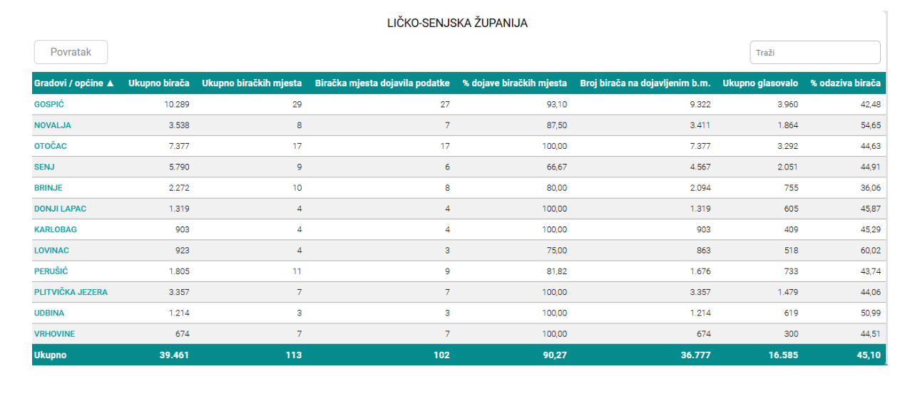 Do 16:30 sati na lokalnim izborima u Hrvatskoj glasovalo je 33,06% birača, pokazuju podaci Državnog izbornog povjerenstva. Najveći odaziv i dalje bilježi Ličko-senjska županija s 45,10% dok je najniži zabilježen u Osječko-baranjskoj županiji s 29,88%.