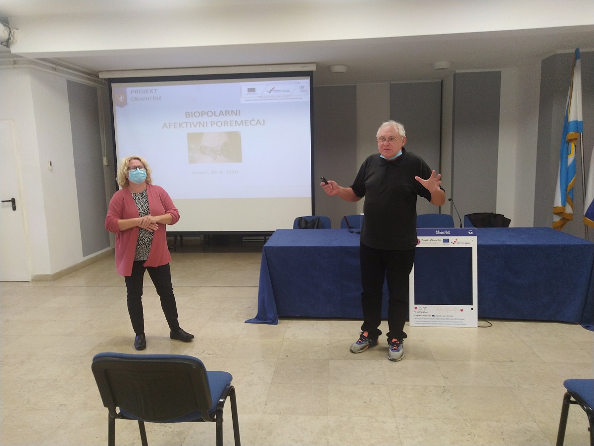 GOSPIĆ- U sklopu projekta Grada Gospića “Okreni list” održana je edukacija o bipolarnom poremećaju. Predavač je bio dr.Marko Kraljević koji kaže da je duševna patnja možda i najteža patnja jer se ne vidi kao tjelesna i teško je procijeniti koliko je velika. Tako je i s bipolarnim poremećajem kod kojeg okolina ne vidi o kolikoj se boli radi. Bipolarni poremećaj tako se zove jer se sastoji od dvije faze, od depresivne i manične. Bipolarni poremećaj može se uspješno liječiti ako se na vrijeme prepozna. Dr.Kraljević kaže da je jako važno što ranije postaviti dijagnozu jer što raniji početak liječenja znači i manju patnju za čovjeka osobno, za njegovu obitelj, te za njegovo radno i socijalno funkcioniranje. Odnosno osnovna svrha liječenja jest čovjeku omogućiti mirniji i bolji život. Ne zna se točno što izaziva bipolarni poremećaj, no udio genetike je barem 70%. Obično je strest okidač. Poremećaj se inače najčešće javlja u pubertetu zbog promjene u organizmu. Može se javiti i kod ozljeda mozga. Bipolarni poremećaj nije duševni poremećaj, on je zapravo poremećaj funkcije mozga.