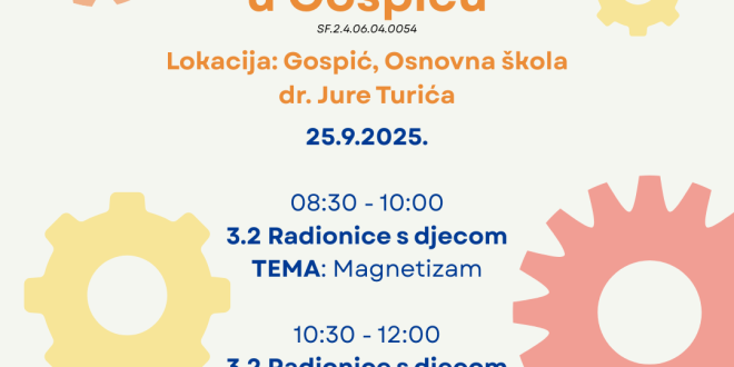 Udruga Nikola Tesla Network – Mreža Nikola Tesla s radošću Vas poziva da pridružite radionicama koje će se održati u osnovnoj školi dr. Jure Turića u Gospiću 25. rujna. Radionice će biti u dva termina, prva radionica trajat će od 08:00 do 10:00 sati, a druga radionica od 10:30 do 12:00 sati. Obje radionice imaju istu temu, a to je tema magnetizma.