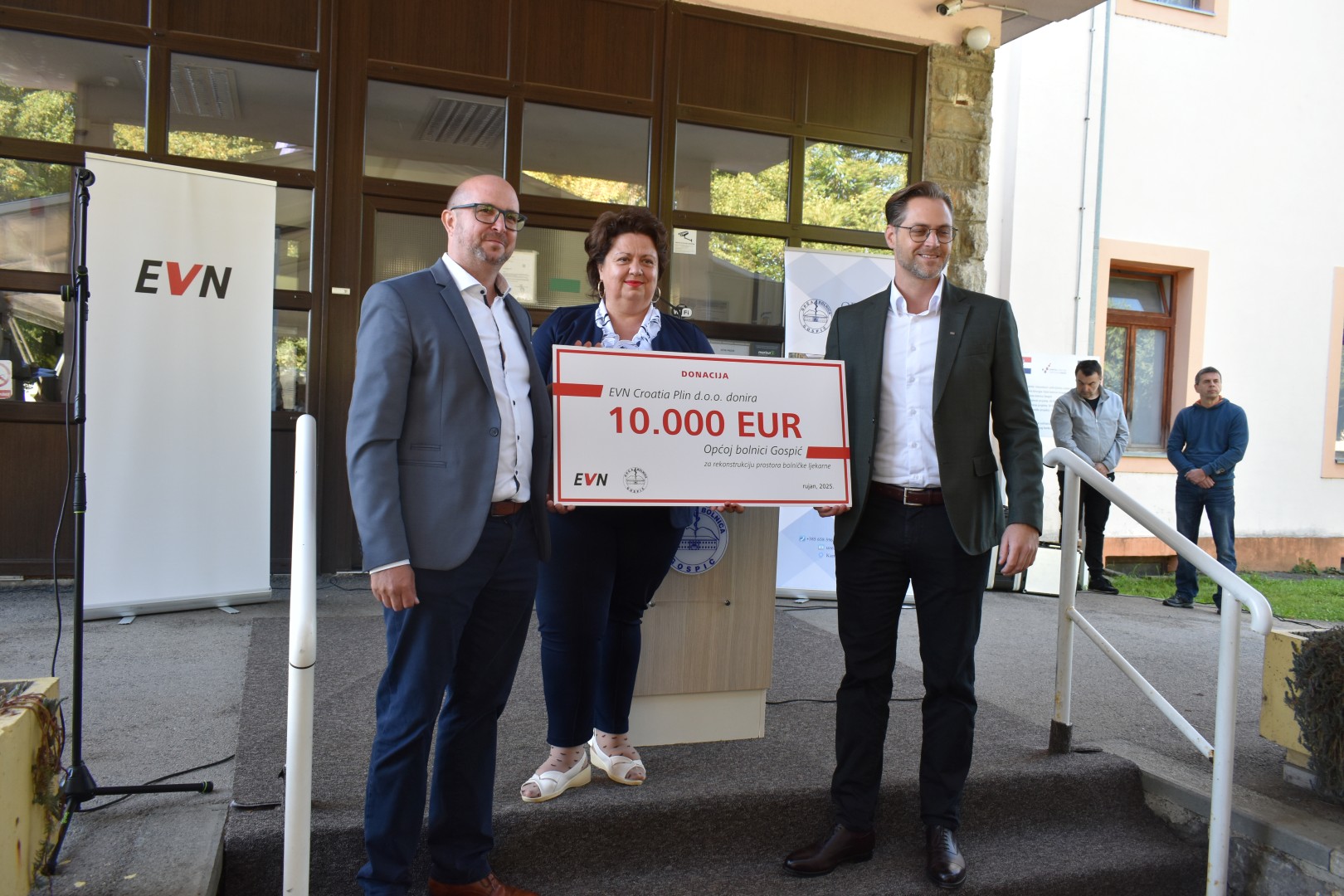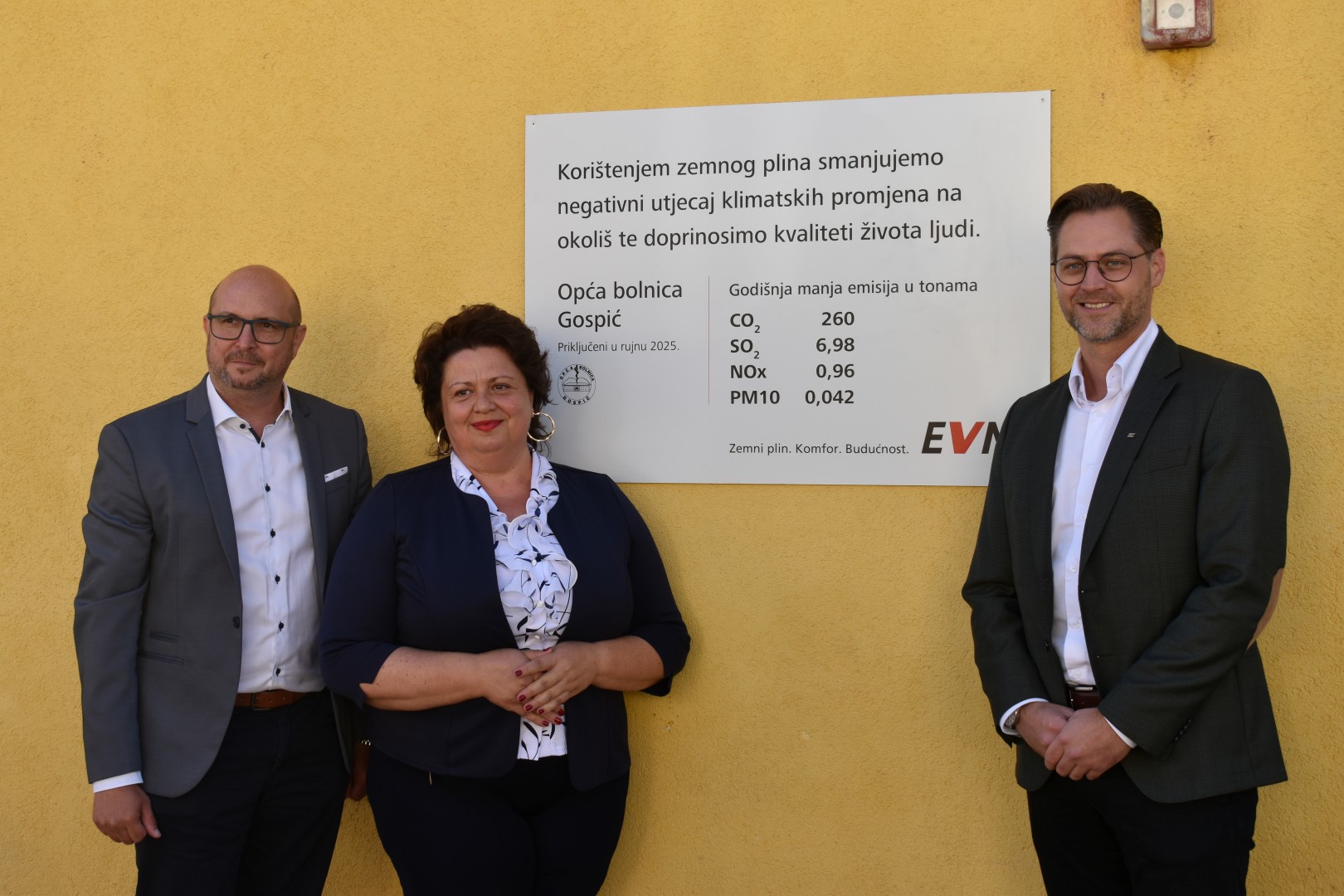 Ispred Opće bolnice Gospić svečano je obilježeno priključenje na plinsku mrežu. Prisutne je pozdravila ravnateljica Opće Bolnice Gospić Sandra Čubelić koja je istaknula kako je riječ o povijesnom trenutku za bolnicu. Kazala je kako će priključenjem na zemni plin doći do velike uštede s obzirom da je grijanje uključeno veći dio godine, a troškovi su bili oko 350 000 eura samo za grijanje. Ravnateljica se zahvalila tvrtci EVN na uspješnoj suradnji. Prisutne je prigodnim govorom pozdravio i Stephan Blieweis, direktor EVN Croatia Plin d.o.o. koji je potom s direktorom EVN Croatia Plin d.o.o. Christopherom Lavickom uručio ravnateljici bon u vrijednosti 10 000 eura koji će biti ti za rekonstrukciju bolničke ljekarne. Gradonačelnik Grada Gospića Darko Milinović je istaknuo kako je posebno vezan za ovaj projekt, 2010.godine otvorio je magistralni plinovod, također je čestitao svima koji su sudjelovali u projektu. Župan Ličko-senjske županije Ernest Petry zahvalio se svim prethodnicima koji su prepoznali važnost priključenja na plinsku mrežu, gradonačelniku Milinoviću, tvrtci EVN kao i svima koji su sudjelovali u projektu. Riječi molitve predvodio je župnik Marko Maglić.