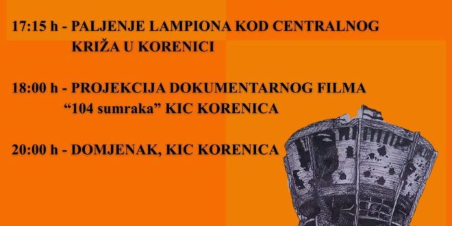 U 18:00 sati u KIC-u Korenica slijedi projekcija dokumentarnog filma „104 Sumraka“, autora Vlade Butine. Ulaz je slobodan.