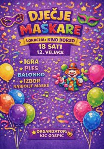 Stiže nam najveselije doba u godini, a skupa s njim i Dječje maškare koje će se održati 12. veljače, odnosno ovog četvrtka u Kinu Korzo Gospić, s početkom u 18 sati.