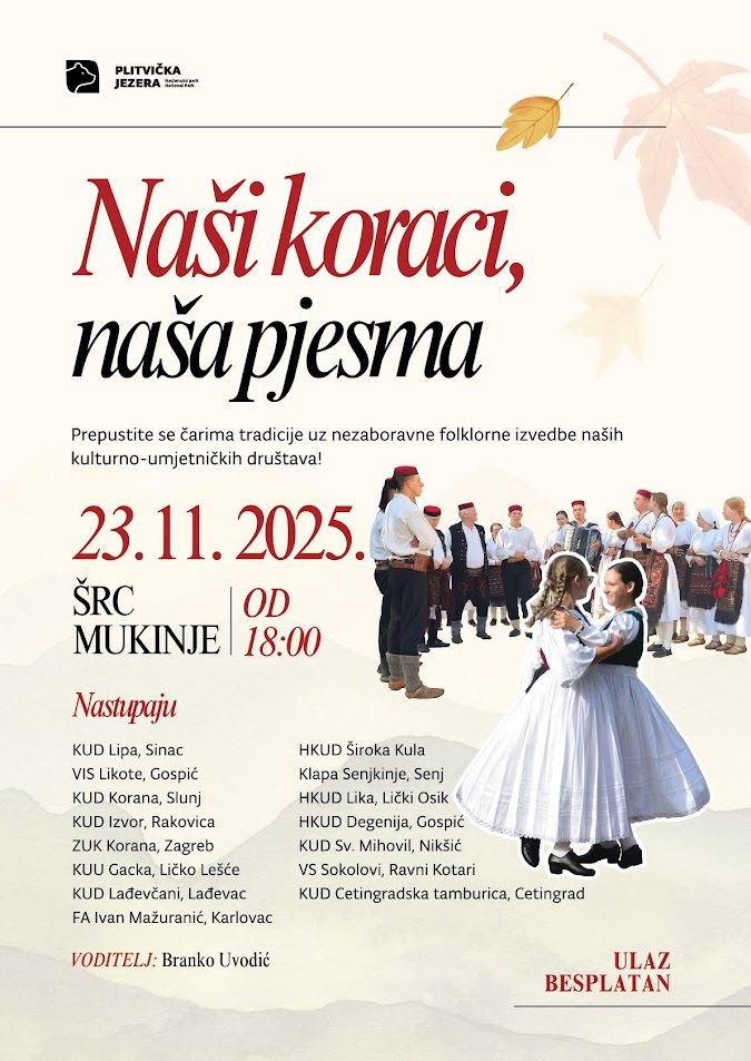 Manifestacija „Naši koraci, naša pjesma“ održat će se u nedjelju, 23. studenoga, u 18 sati u Športsko-rekreacijskom centru Mukinje.