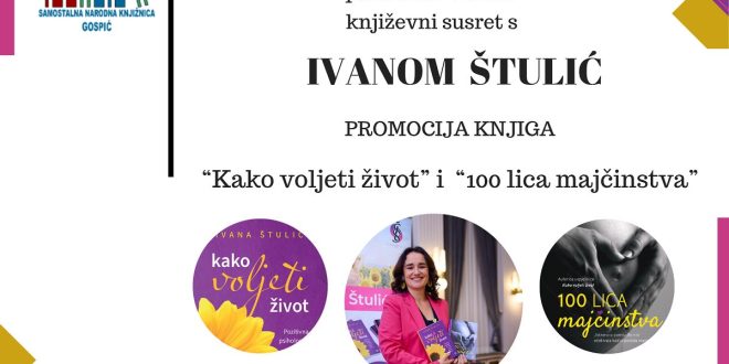 Samostalna narodna knjižnica Gospić najavljuje književni susret s Ivanom Štulić uz promociju knjiga „Kako voljeti život“ i „100 lica majčinstva“. “Kako voljeti život – Pozitivna psihologija na Putu istine, radosti i ljubavi” njena je prva knjiga u kojoj isprepliće priču o svom Caminu, španjolskom hodočašću, s načelima pozitivne psihologije, znanosti o optimalnom ljudskom funkcioniranju.