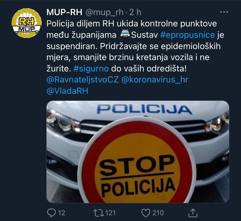 – Sustav #epropusnice je suspendiran. Pridržavajte se epidemioloških mjera, smanjite brzinu kretanja vozila i ne žurite. #sigurno do vaših odredišta! – poručili su iz Ministarstva unutarnjih poslova.