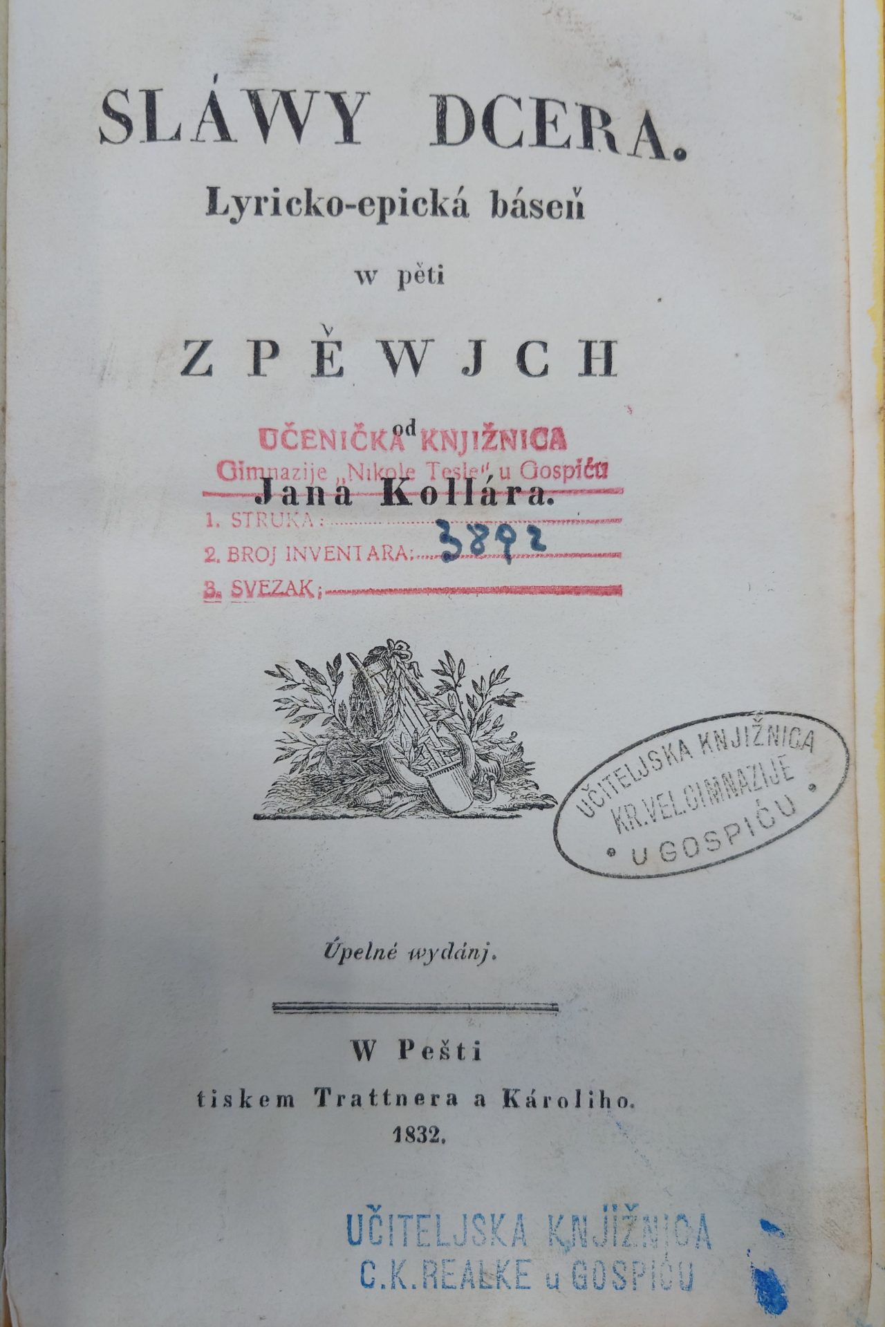Nacionalna i sveučilišna knjižnica u Zagrebu na temelju članka 18. stavak 3. Zakona o zaštiti i očuvanju kulturnih dobara i čl. 24. podstavka 13. Zakona o knjižnicama i knjižničnoj djelatnosti donijela je odluku kojom se Zbirka starih knjiga Gimnazije Gospić proglašava kulturnim dobrom. Zbirka sadrži 49 jedinica knjižnične građe koje potječu iz razdoblja od 1787. do 1850. godine. Nakon preliminarnih poslova identificiranja, organiziranja i obrade knjižnične građe proveden je stručni nadzor Službe za baštinske zbirke te nakon ispunjenih svih zahtjeva i preporuka koji su bili uvjet za donošenje Odluke, Gimnazija Gospić je i službeno imatelj kulturnog dobra odnosno preuzima obveze regulirane Zakonom o zaštiti i očuvanju kulturnih dobara kako bi se ova knjižnična baština sačuvala za buduće naraštaje. Od 49 naslova 2 su naslova periodike u tri sveska, i to Kolo i Danica. Sadržajno su najzastupljenija djela iz područja društvenih i humanističkih znanosti te vojne povijesti. Od jezika je najzastupljeniji njemački jezik dok je na hrvatskom jedna jedinica knjižne građe – Piesni razlike Dinka Ranjine, tiskane 1850. godine u tiskari Ljudevita Gaja. Zbirka starih knjiga samo je manji dio velike Zbirke stare knjižnične građe iz 19. i 20. stoljeća koja sadrži preko 3000 jedinica i čuva se u našoj Knjižnici. U sačuvanim zapisima, nedugo od osnutka Škole (1860.), spominje se i Knjižnica koja se od tada stvara i nastoji sačuvati o čemu nam svjedoče pečati Gimnazije koji se nalaze i na najstarijim primjercima. Očuvanje knjižnične baštine ključno je za očuvanje identiteta, obrazovanja i kulturne baštine jednog društva jer nam pruža resurse za istraživanje, obrazovanje i kulturne aktivnosti.